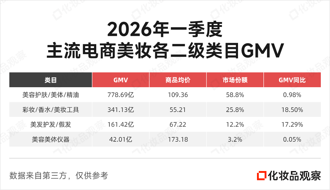 (注:美妆包含——美容护肤/美体/精油、彩妆/香水/美妆工具、美发护发/假发、美容美体仪器4个二级类目)