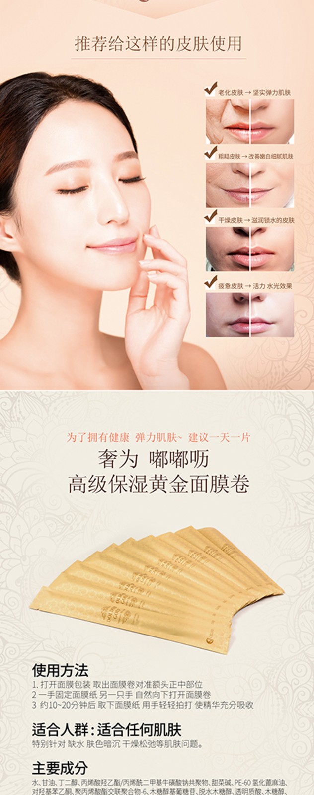 奢为嘟嘟呖黄金保湿面膜卷