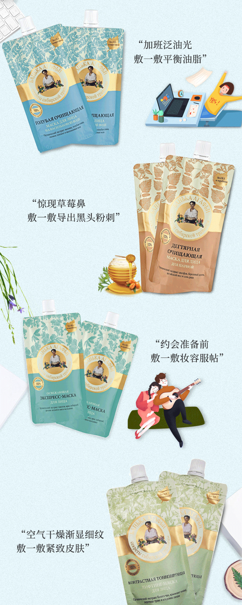 婀卡菲娅老奶奶面膜-蓝色清洁